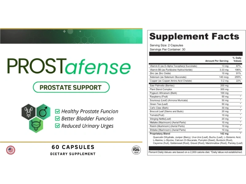In conclusion, ProstAfense is a cutting-edge natural supplement specifically formulated to support prostate health, enhance urinary function, and restore male vitality. With powerful ingredients known for their anti-inflammatory and urinary support properties, ProstAfense helps reduce frequent nighttime urination, improve bladder control, and promote overall well-being.